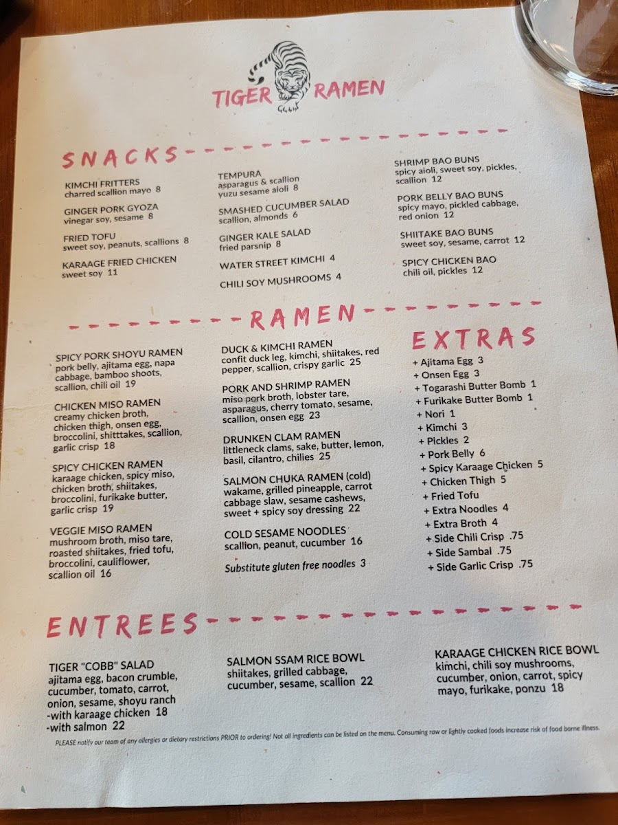 Welcome to Tiger Ramen, a vibrant gem nestled at 587 Main St in Falmouth, MA. This trendy spot brings together delicious flavors and a warm atmosphere, perfect for date nights or family outings. The menu features delightful options, including the acclaimed chicken miso ramen with a rich onsen egg and appetizing shiitake bao.